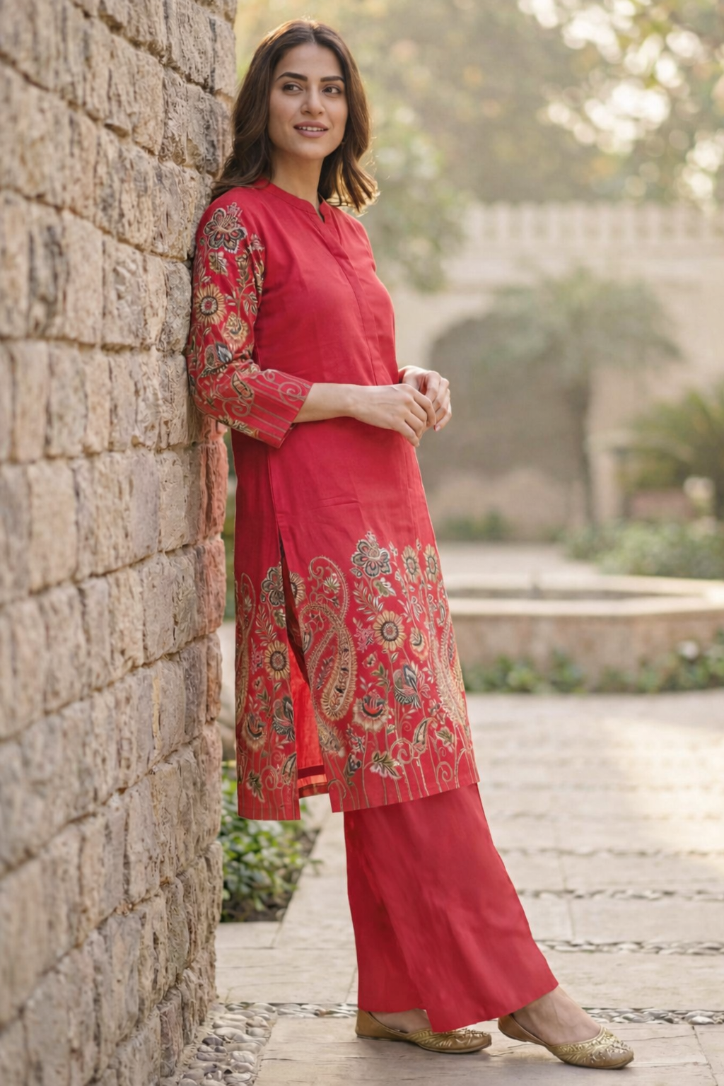 Step into effortless elegance with this stunning red rayon kurti set from GemNovaLuxe. Crafted with premium-quality fabric, this outfit features intricate floral prints on the sleeves and hem, giving it a rich ethnic yet modern look.